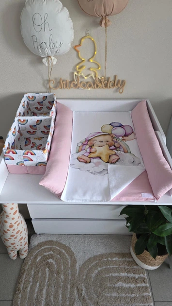 Матрасик для сповивання з кошиком для дрібниць Ведмедик, повітряні кулі та райдуги + пудрова бавовна 70*60 см, водовідштовху