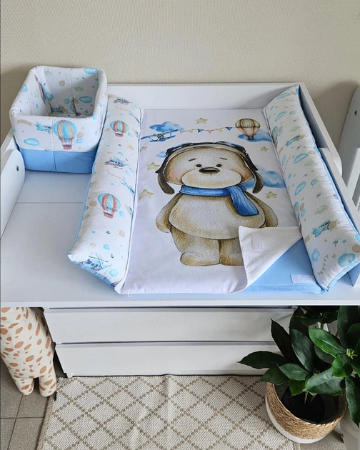Матрасик для сповивання з кошиком для дрібниць Ведмедик пілот + блакитний 70*60 см, водовідштовхуюча накладка з принтом