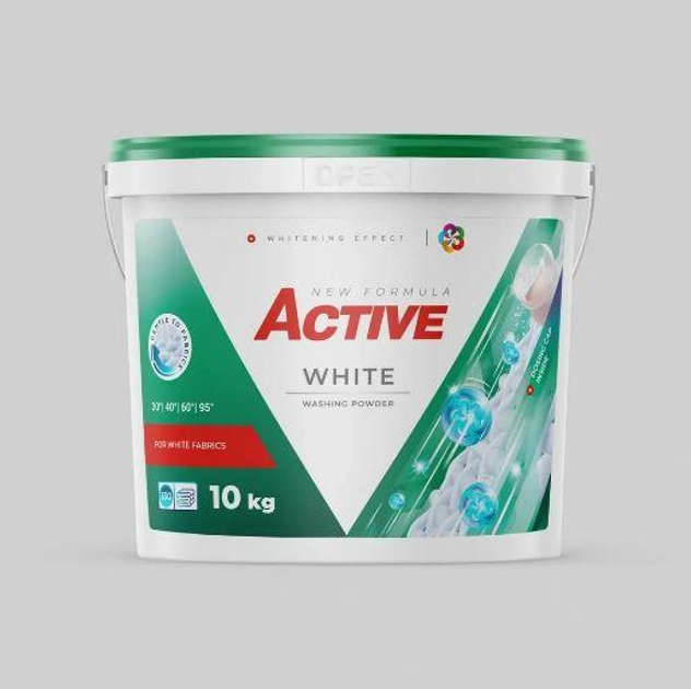 Пральний порошок Active White Powder для білих речей у відрі, 10 кг (130 циклів)