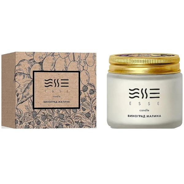 Вид/Аромасвічка|Особливості/В банці|Бренд/Esse|Вага, г/50 г|Час горіння/8 год|Аромат/Яблуко, Жасмін, Малина, Персик, Виноград|Кількість, шт/1 шт|Базовий колір/Бежевий|Матеріал свічки/Соєвий віск|Форма/Коло|Країна виробництва/Україна|Матеріал/Скло