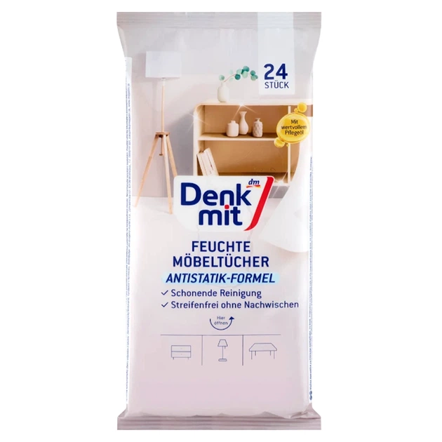 Вологі салфетки Denkmit для догляду за меблями Mit Antistatik-Formel з антистатичним ефектом, 24 шт.