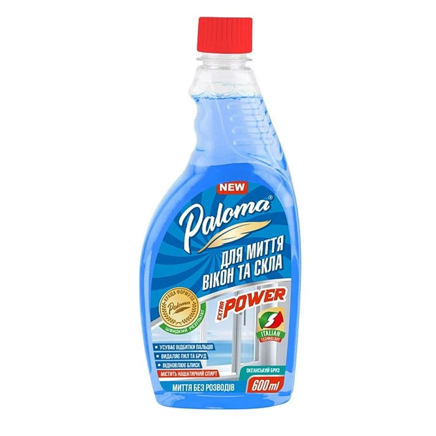 Очисник для скла та дзеркал Paloma Extra Power з нашатирним спиртом 600 мл запаска (PE50953)