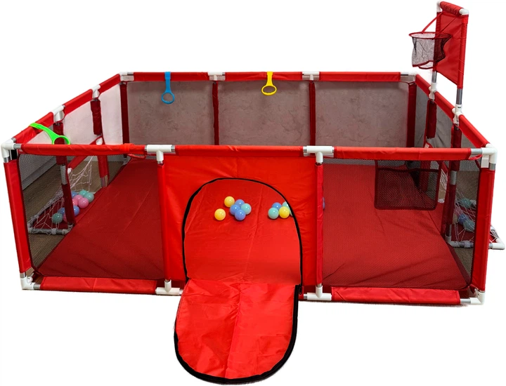 Дитячий ігровий манеж 120180 см Червоний із баскетбольним кільцем, воротами, кульками та ручками — безпечний простір для мал