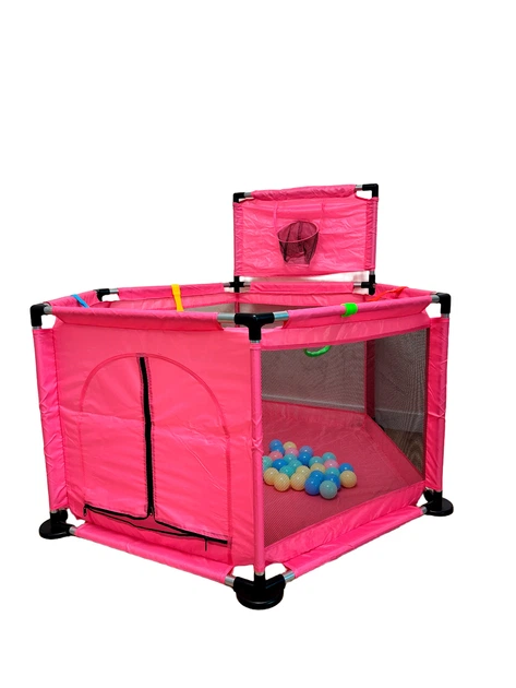 Дитячий ігровий манеж 12866 см із металевим каркасом Рожевий, баскетбольним кільцем, кульками, ручками та сумкою