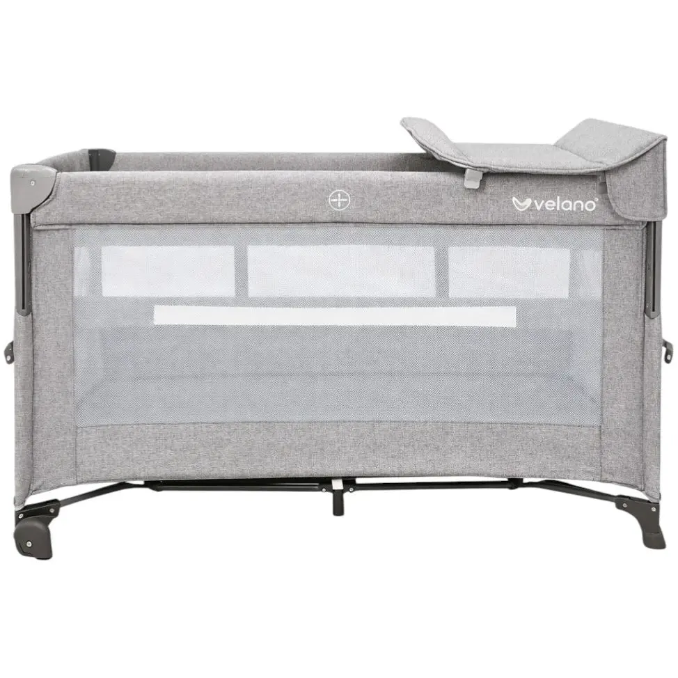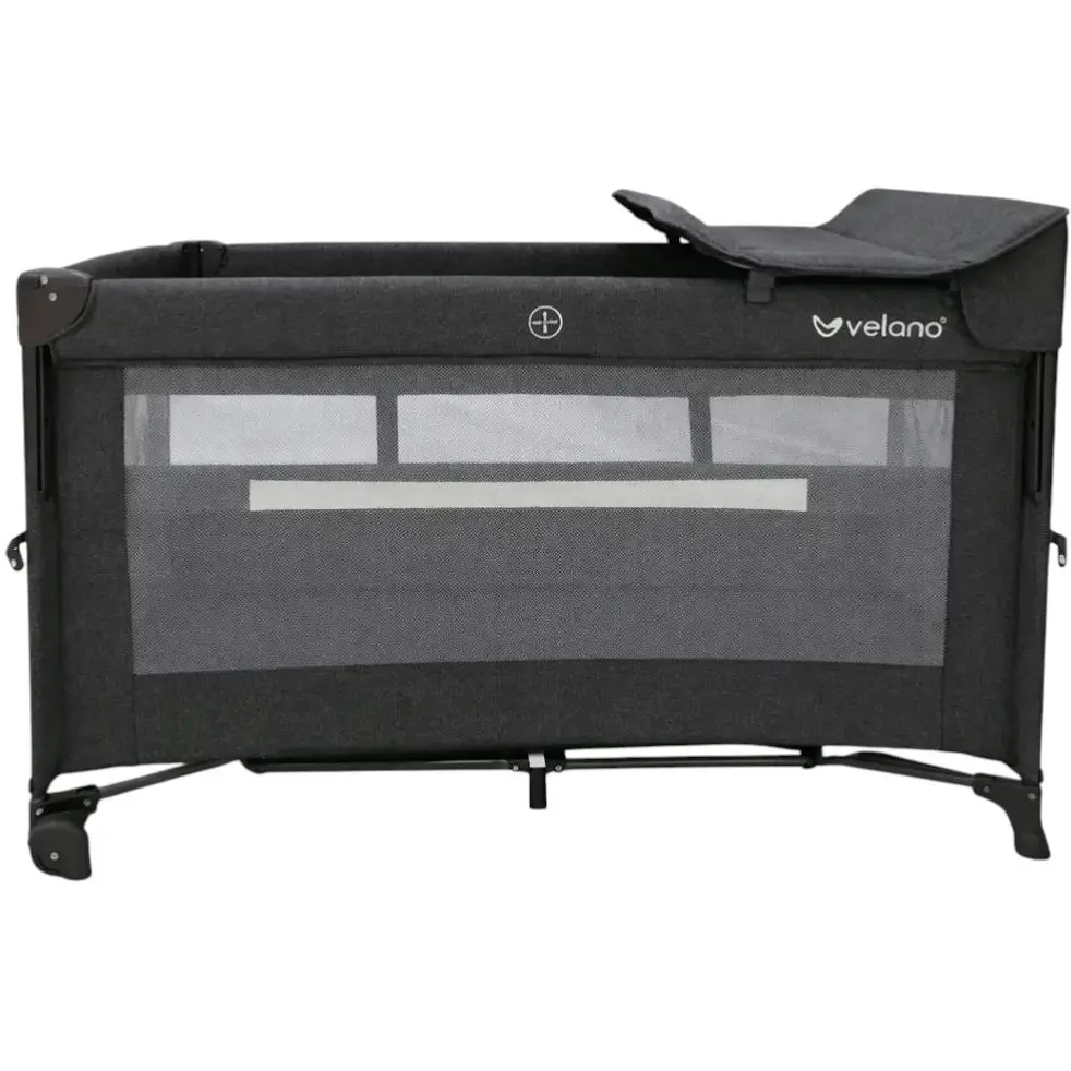 Ліжко-манеж дитяче з другим ярусом та пеленатором VELANO Tino, dark grey