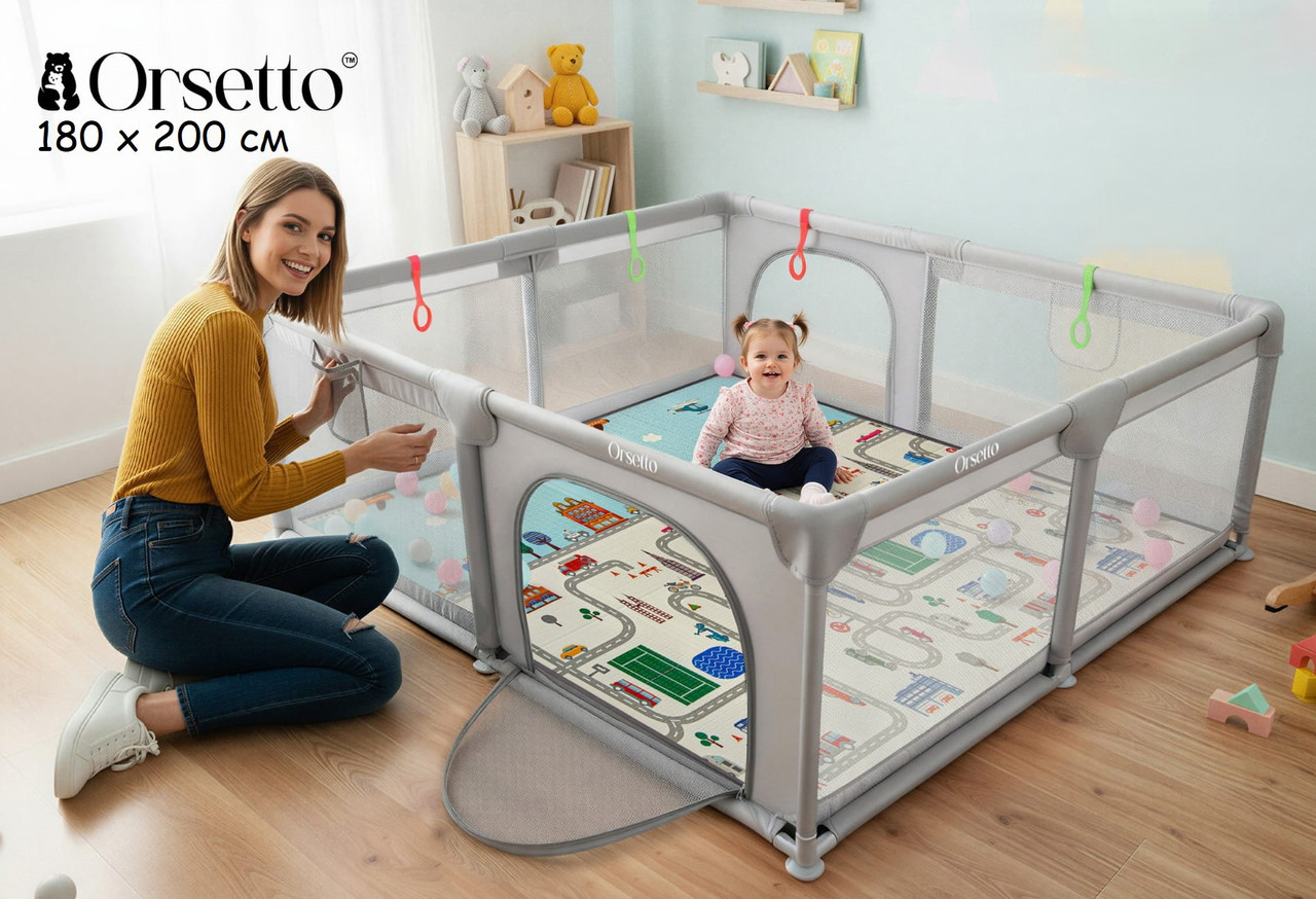 Дитячий ігровий манеж з двостороннім килимком Orsetto 180×200 см ORS1820