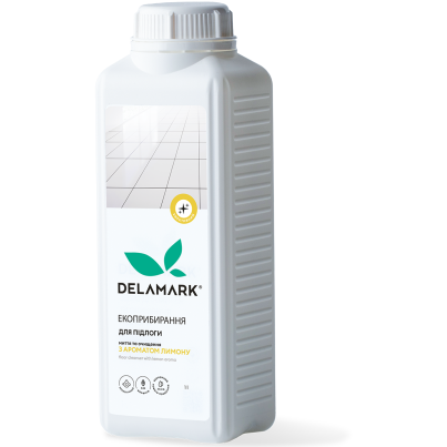 Еко/Так|Об`єм, мл/1 л|Бренд/DeLaMark|Комплектація, шт/1 шт|Матеріал упаковки/Пластик|Застосування/Для підлоги|Тип засобу/Рідина