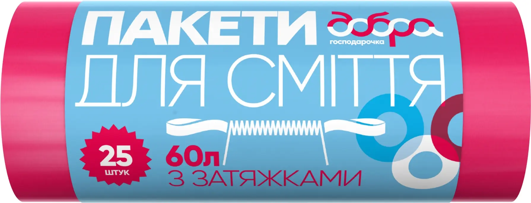 Пакети для сміття Добра господарочка, з затяжками, 60 л, 25 шт. (4820086521925)