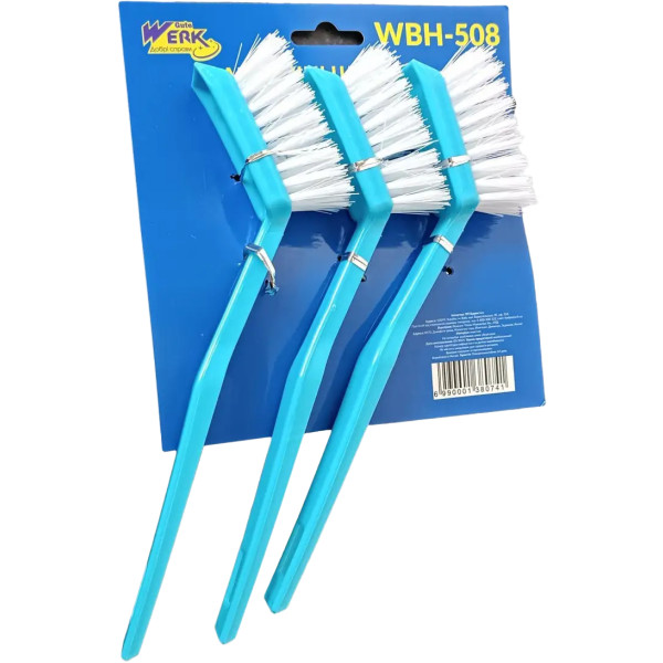 Матеріал корпусу/Пластик|Колір виробника/Блакитний|Бренд/Werk|Комплектація/Щітки|Ширина ручки/3 см|Особливості/Ергономічна ручка, Отвір для підвісу|Довжина ручки, см/23 см|Гарантійний термін/Ні