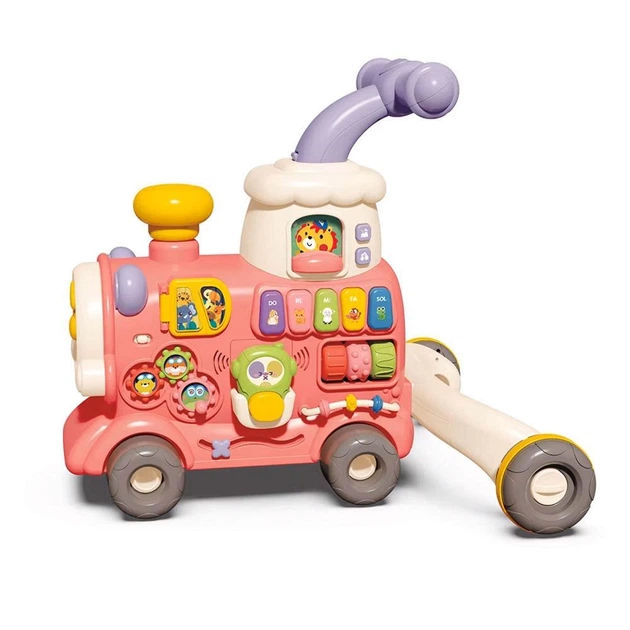 Ходунки для дітей 3 в 1 Каталка Музичний ігровий центр із парогенерацією Потяг Рожевий