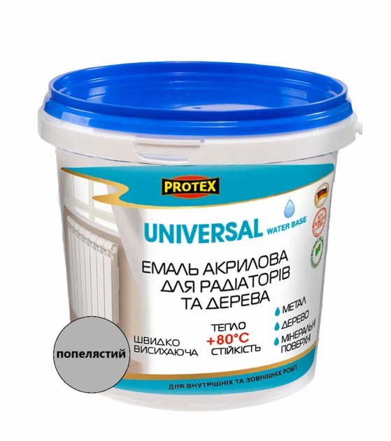 Емаль акрилова водно-дисперсійна Universal PROTEX попелястий 0.35кг 300мл