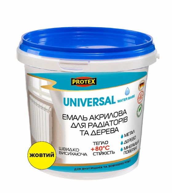 Емаль акрилова водно-дисперсійна Universal PROTEX жовта 0.35кг 300мл