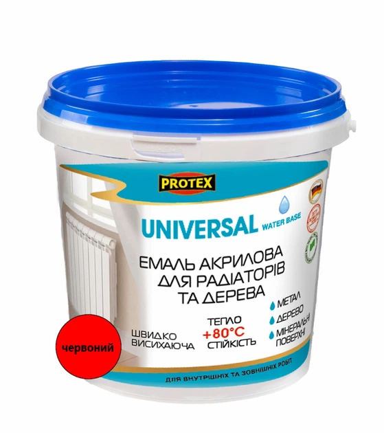 Емаль акрилова водно-дисперсійна Universal PROTEX червона 0.35кг 300мл