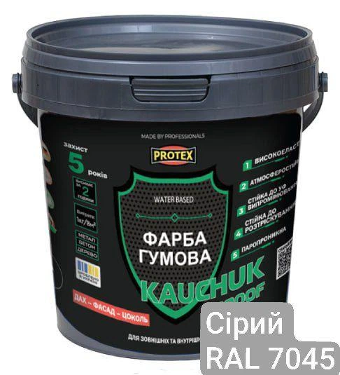 Фарба високоеластична KAUCHUK proof Water Based PROTEX RAL 7045 сіра 1.3кг