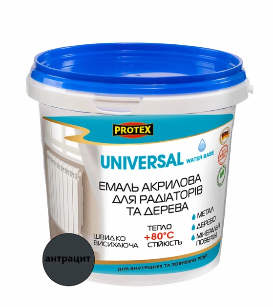 Емаль акрилова водно-дисперсійна Universal PROTEX антрацит 0.35кг 300мл