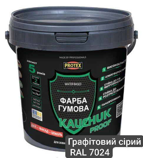 Фарба високоеластична KAUCHUK proof Water Based PROTEX RAL 7024 графітовий 1.3кг
