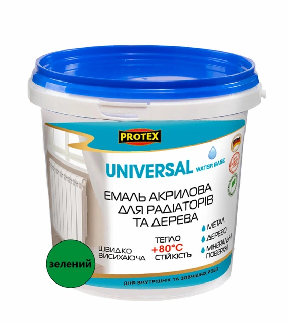 Емаль акрилова водно-дисперсійна Universal PROTEX зелена 0.35кг 300мл