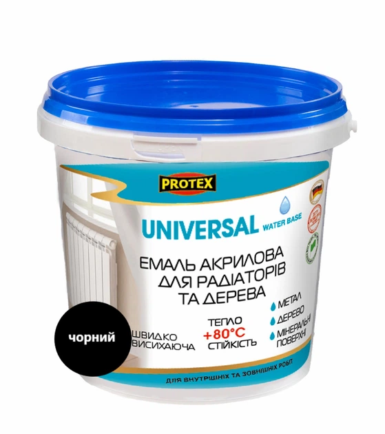 Емаль акрилова водно-дисперсійна Universal PROTEX чорна 0.35кг 300мл