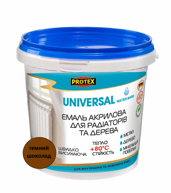 Емаль акрилова водно-дисперсійна Universal PROTEX темний шоколад 0.35кг 300мл