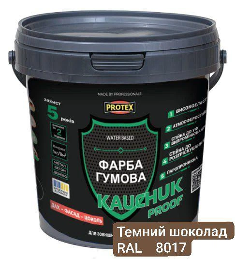 Фарба високоеластична KAUCHUK proof Water Based PROTEX RAL 8017 темний шоколад 1.3кг
