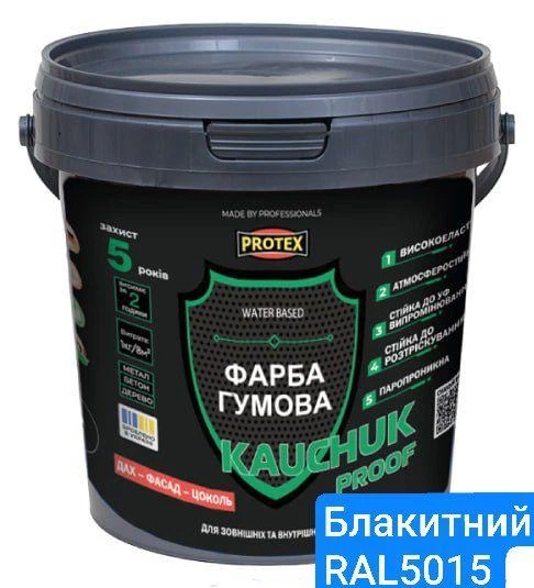 Фарба високоеластична KAUCHUK proof Water Based PROTEX RAL 5015 блакитна 1.3кг