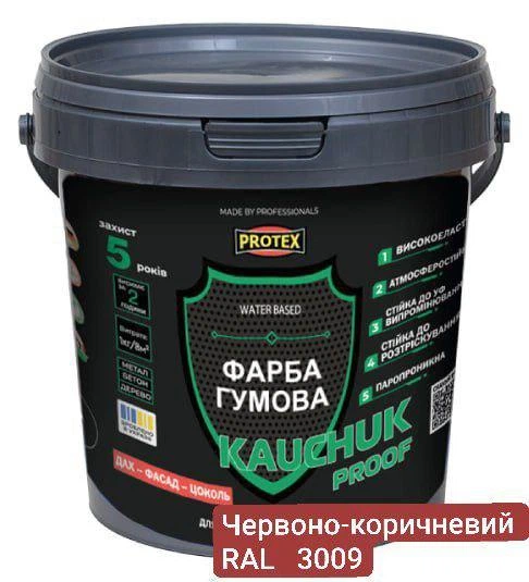 Фарба високоеластична KAUCHUK proof Water Based PROTEX RAL 3009 червоно-коричнева 1.3кг