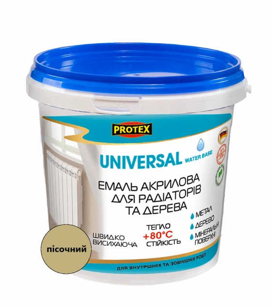 Емаль акрилова водно-дисперсійна Universal PROTEX пісочна 0.35кг 300мл