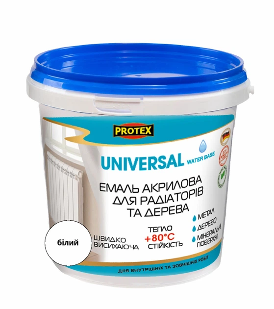 Емаль акрилова водно-дисперсійна Universal PROTEX біла 0.35кг 300мл