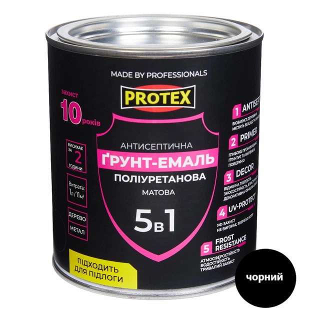 Грунт-емаль 5в1 поліуретанова для дерева матова PROTEX RAL 9011 чорна 0.8кг 670мл