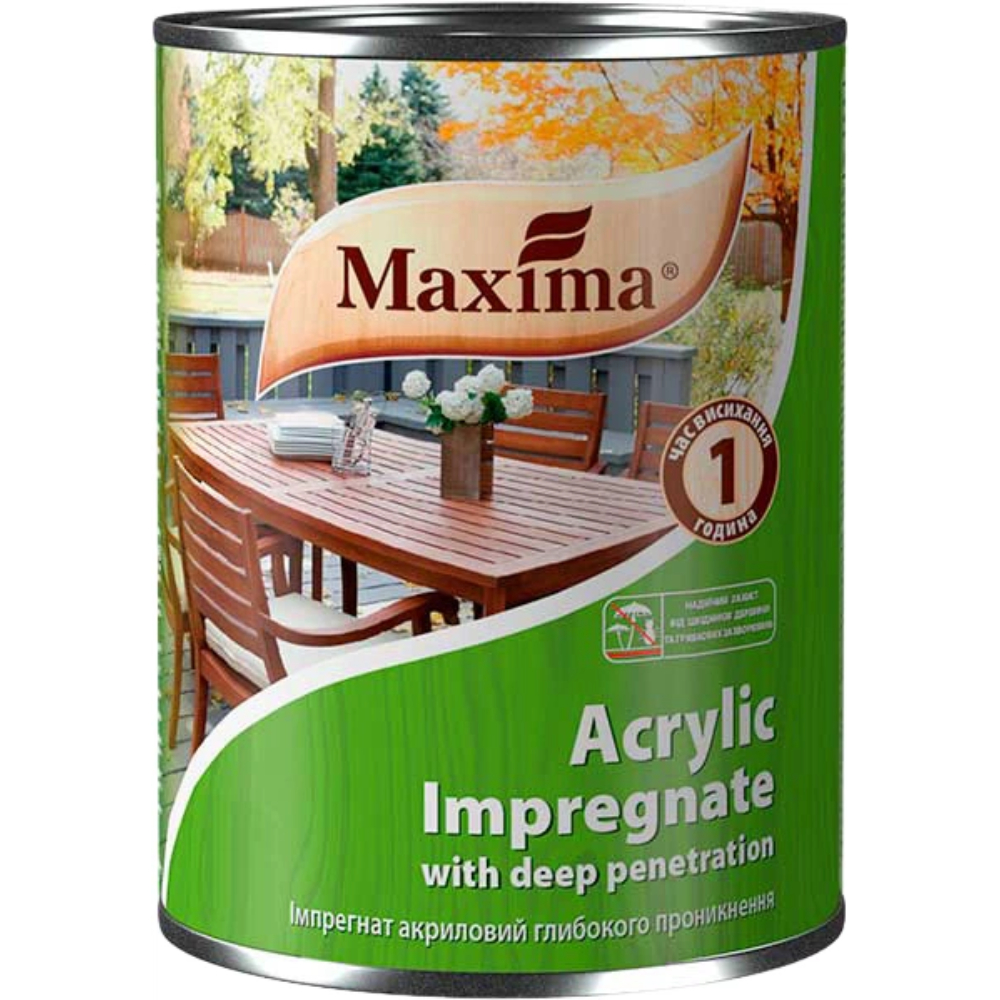 Бренд: Maxima; Час висихання, годин: 1; Інструменти для нанесення: Пензель; Колір: Сосна; Країна виробництва: Україна; Об'єм, л: 0.75; Рекомендована кількість шарів: 2; Серія: Acrylic Impregnate; Сфера застосування: Універсальний; Склад: Модифікована акрилова дисперсія, пігментні пасти, вода, віск, цільові добавки; Ступінь блиску: Матова; Технічна документація: Технічний паспорт; Тип розчину: Готовий до застосування; Від типів уражень: Біозахист; Витрати (кв.м/л) при одношаровому нанесенні: 50-150 мл/кв.м
