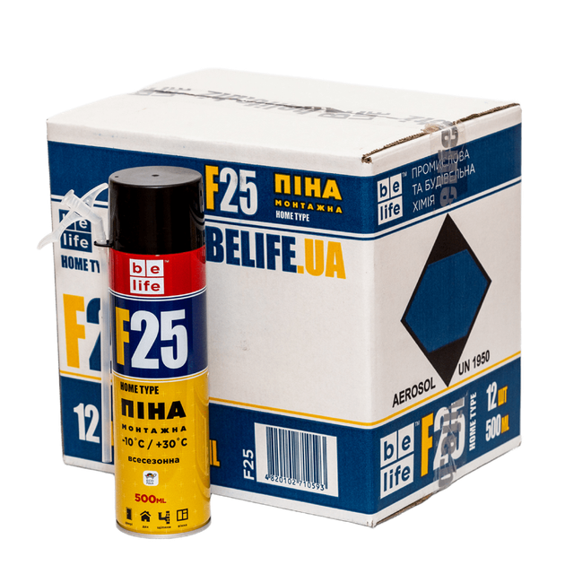 Всесезонна побутова монтажна піна з трубкою 25л. BeLife F25 500 мл