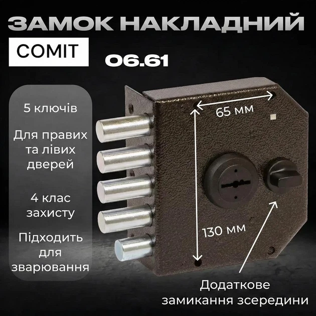 Замок накладний для вхідних дверей COMIT 0661 (АНАЛОГ ЕЛЬБОР ГРАНІТ 1.06.61.МА) чотири ригелі + засувка
