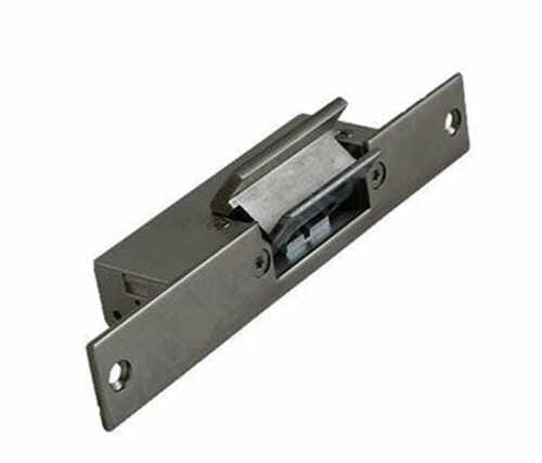 Засувка електромеханічна - нормально закрита (при подачі напруги - відкриває замок), з фіксатором. Нержавіюча сталь. Розмір: 130x24x30.5 мм, харчування: 12 В.