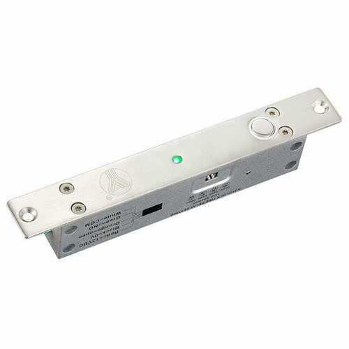 Електрорігельний YB-100S замок, без живлення відкритий. Підходить для дерев’яної, скляної, металевої та протипожежних дверей. Може бути встановлений на безрамну скляну, на що відкривається в обидві сторони двері.
