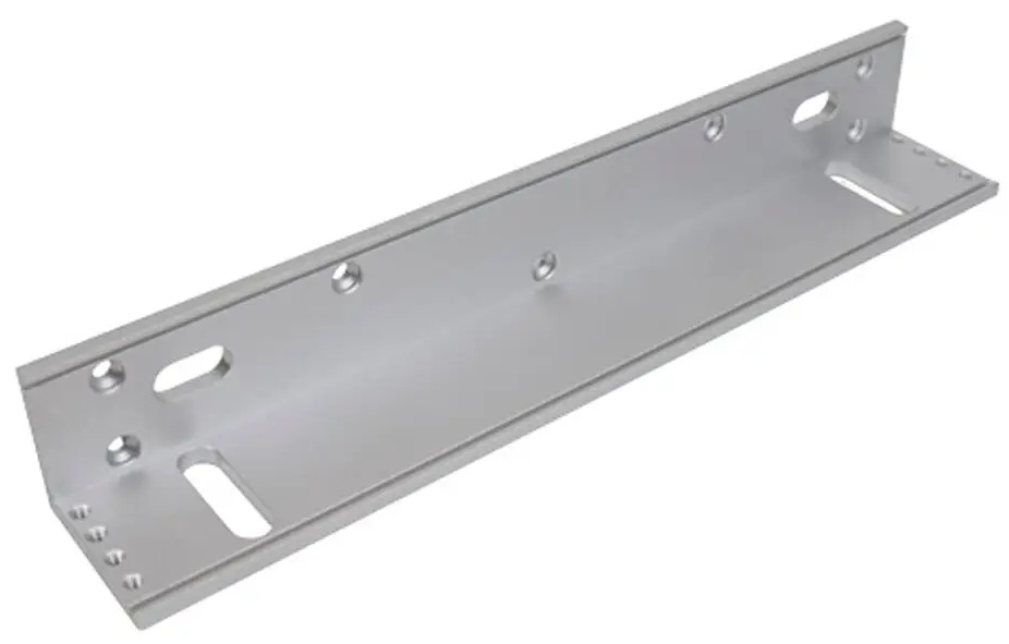 L-образній кронштейн для кріплення електромагнітного замка на вузькі двері. Підходить для електромагнітних замків N-серії з силою утримання 500 кг. Розміри: 265x73x45мм