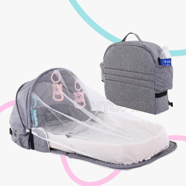 Сумка ліжечко для дітей портативне розкладне сіре (сумка-пеленатор)