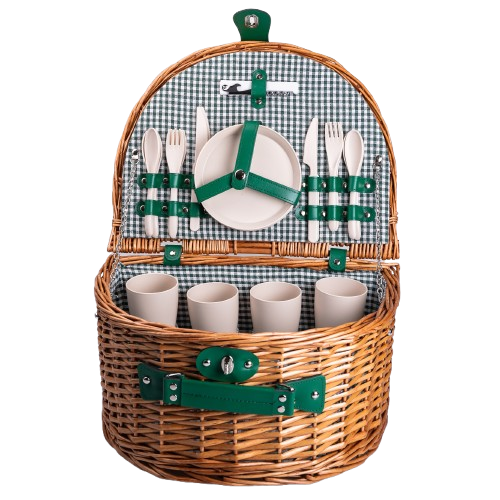 Кошик плетений для пікніка з посудом на 4 персони 48х33х43 см набір посуду туристичний для кемпінгу HP SRLD4324
