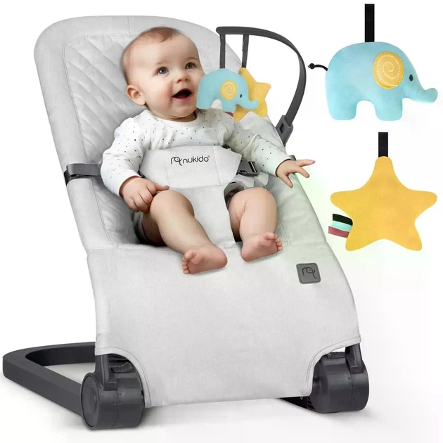 Дитячий шезлонг-гойдалка Nukido СР705201, з іграшками, світло-сірий