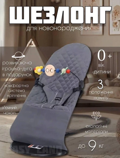 Дитячий шезлонг заколисуючий центр для новонароджених дітей дитяче крісло шезлонги дитячі гойдалки крісла Сolombokid сірий в