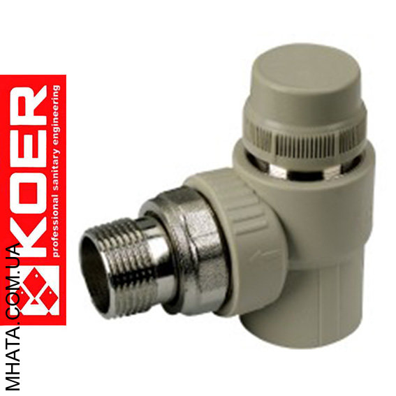 KOER Кран радиаторный угловой термостатический 25*3/4н", Чехия