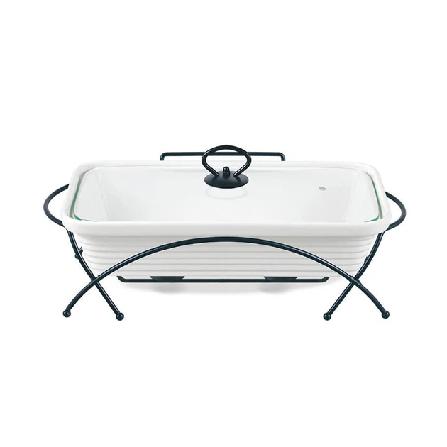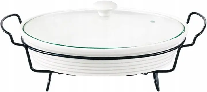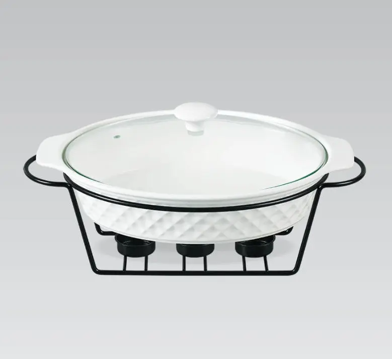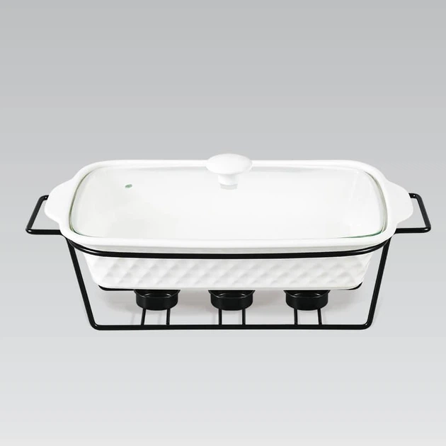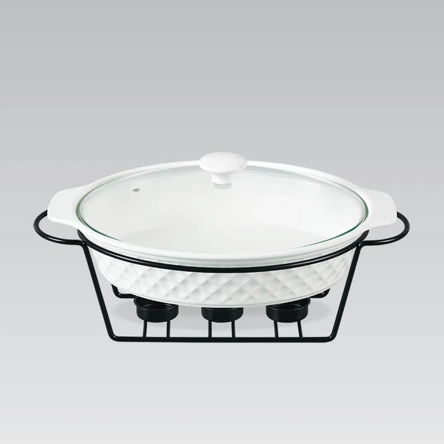 Марміт Maestro MR-11260-74 Керамічна каструля з кришкою 1,6л на підставці овальна 30см х 23см Білий