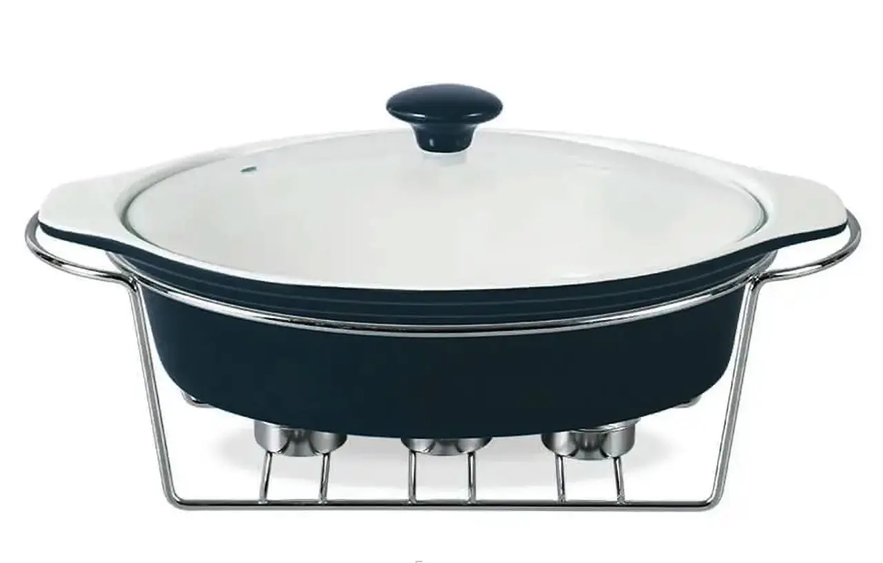 Марміт Maestro MR-11361-74 Керамічна каструля з кришкою 1,5л на підставці овальна 32,5см х 22см Чорний