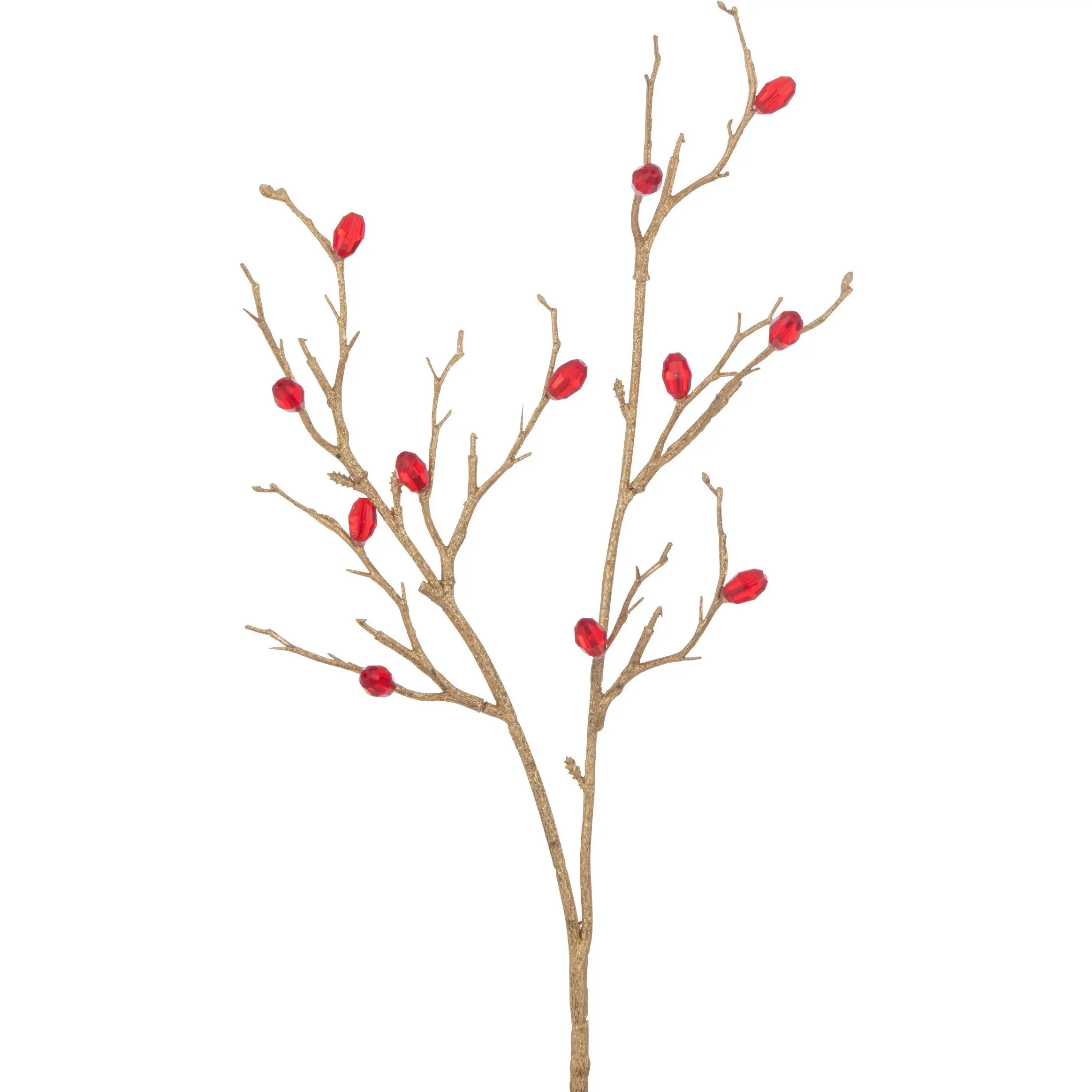 Штучна гілочка золотого кольору J-LINE з камінням червоного кольору висота 49 см (37549)
