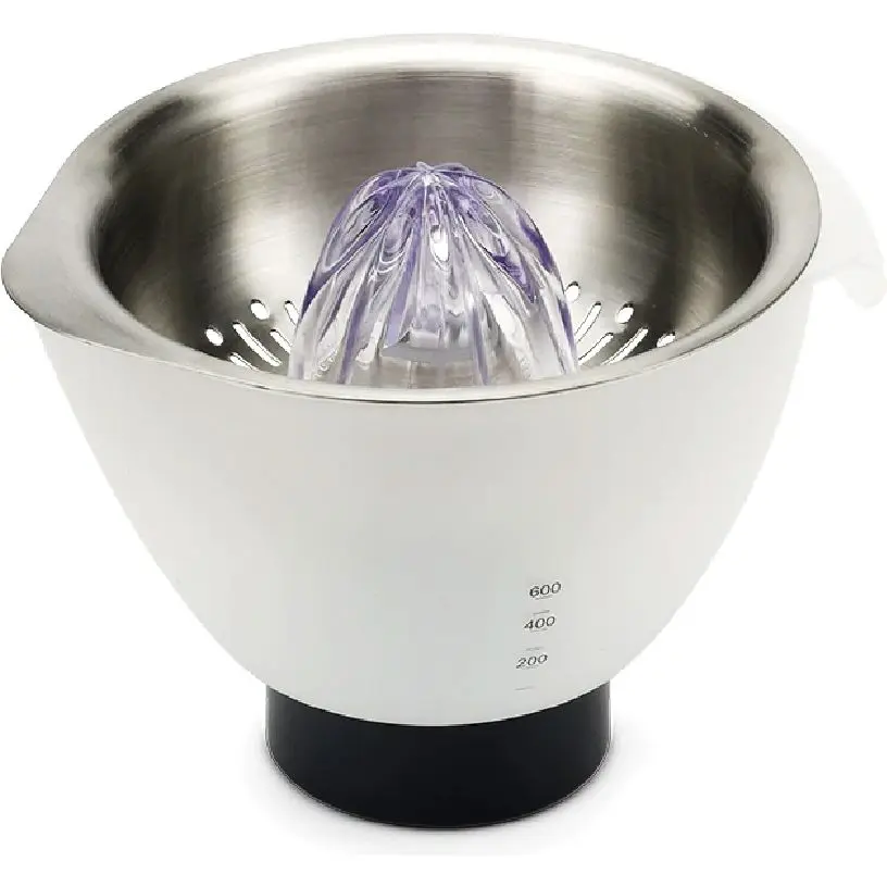 Насадка цитрус-прес має просту конструкцію. Це пластикова чаша та металеві грати. Об'єм чаші 600 мл. з такою місткістю можна приготувати кілька порцій фрешу за один раз. Сито виготовлене із нержавіючої сталі.