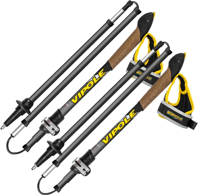 Основні характеристики: на розмір 110 см: 1-сегментна конструкція діаметр палиці: 16/14 мм палиця: карбон (карбон) 60%, алюміній 40% скловолокно ручка: пробка + ПЕ накладки: ПВХ наконечник: загартована сталь вага 1 палички близько 173 г вага всього комплекту в чохлі: близько 370 г антишокова амортизація (Anti-shock - технологія, яка поглинає удари, зменшуючи м'язову втому) ергономічна пробкова ручка регульована петля на зап'ясті з відбивачем У комплекті: 2 палиці чохол набір наконечників набір насадок гарантія: 24 місяці