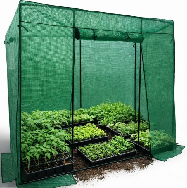 Теплиця Bonro B-2104 - це просторе та надійне рішення для вирощування розсади, овочів, зелені та квітів. Модель має збільшену площу та 8 полиць, що забезпечують достатньо місця для великої кількості рослин. Каркас виготовлений зі сталевих труб діаметром 16 мм із порошковим покриттям, що гарантує стійкість до корозії, а міцне покриття з зеленої PE-сітки 140 г/м² створює оптимальний