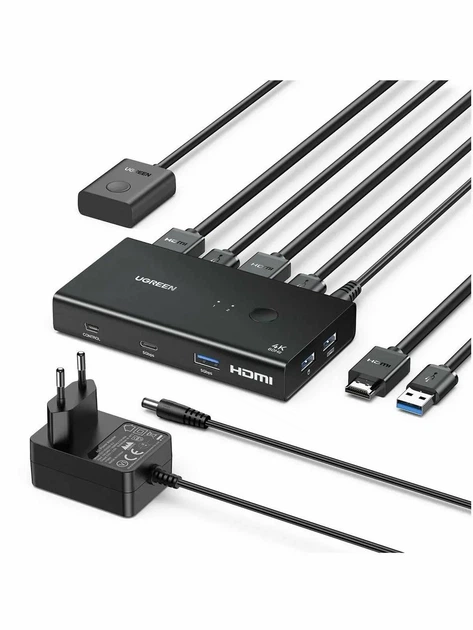 KVM-перемикач Ugreen 2 In 1 Out HDMI KVM Switch Black (AK502)