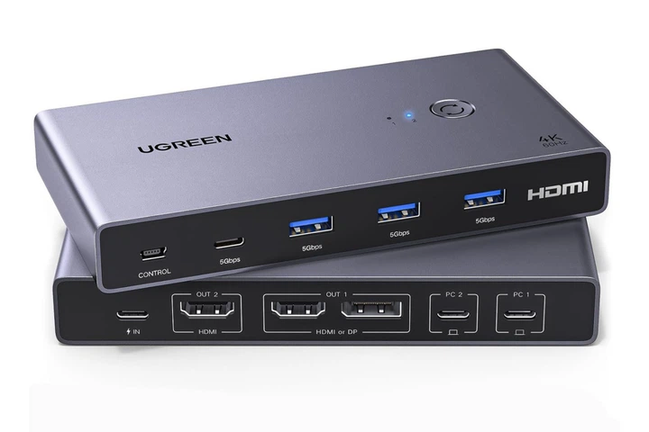 KVM-перемикач Ugreen Type-C HDMI DisplayPort 4k 60hz USB 3.0 PD100W Grey (CM732)