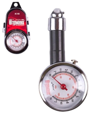 Використовується для вимірювання тиску в шинах автомобіля. Контроль значень тиску і доведення його до норми істотно впливають не тільки на комфорт при їзді і безпеку руху на дорозі, але і на витрату пального, а також рівномірність зносу покришок.