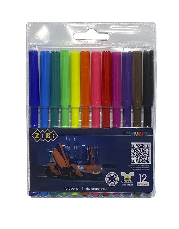 Фломастери ZiBi Smart Line Машинка, 12 кольорів, 2 шт.
